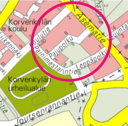 Suunnittelualue sijaitsee Korvenkylässä, Pajupolun molemmin puolin.